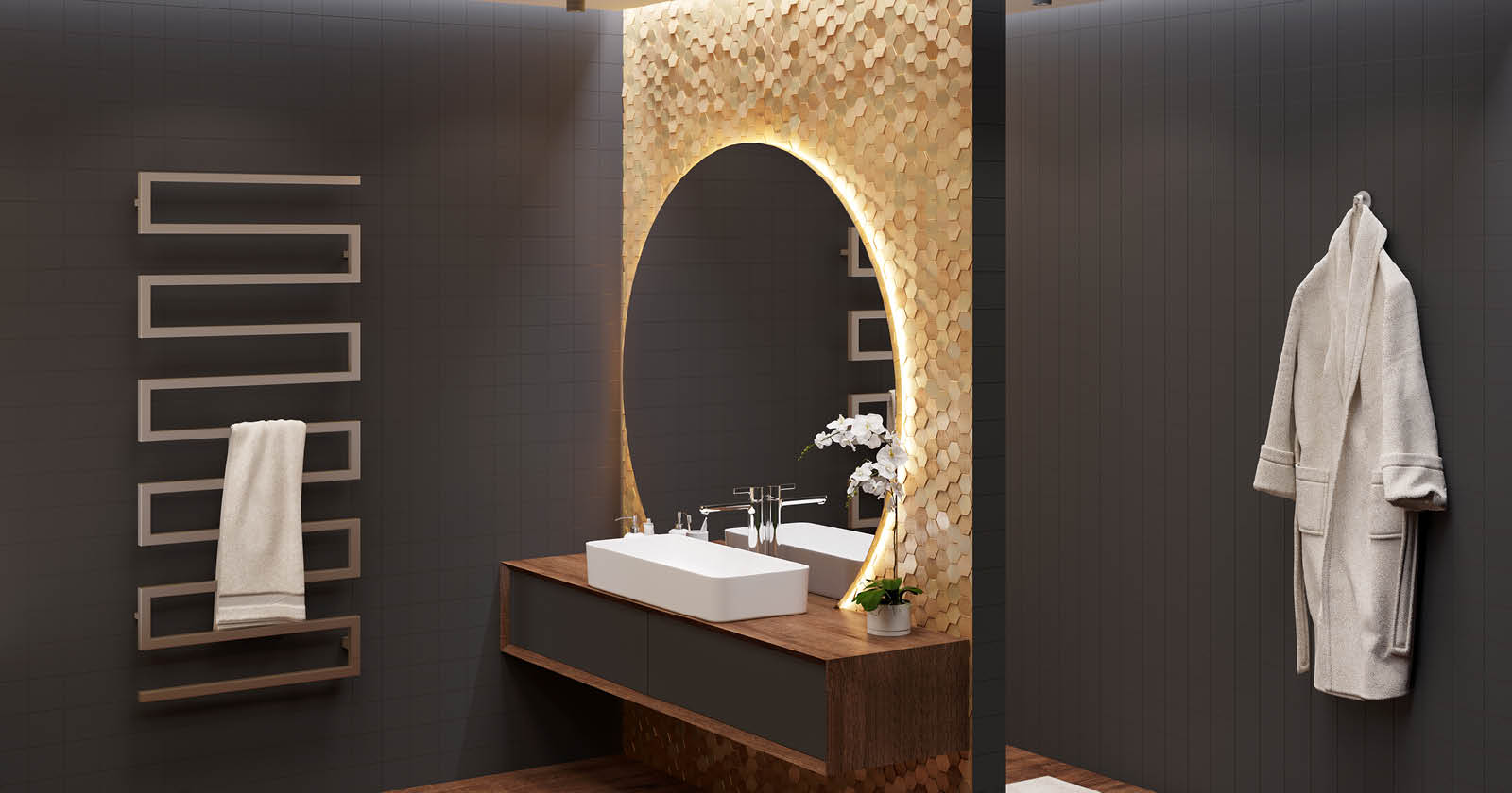 Non è necessario ristrutturare completamente il tuo bagno per introdurre dettagli dorati, anche piccoli elementi, possono fare la differenza.