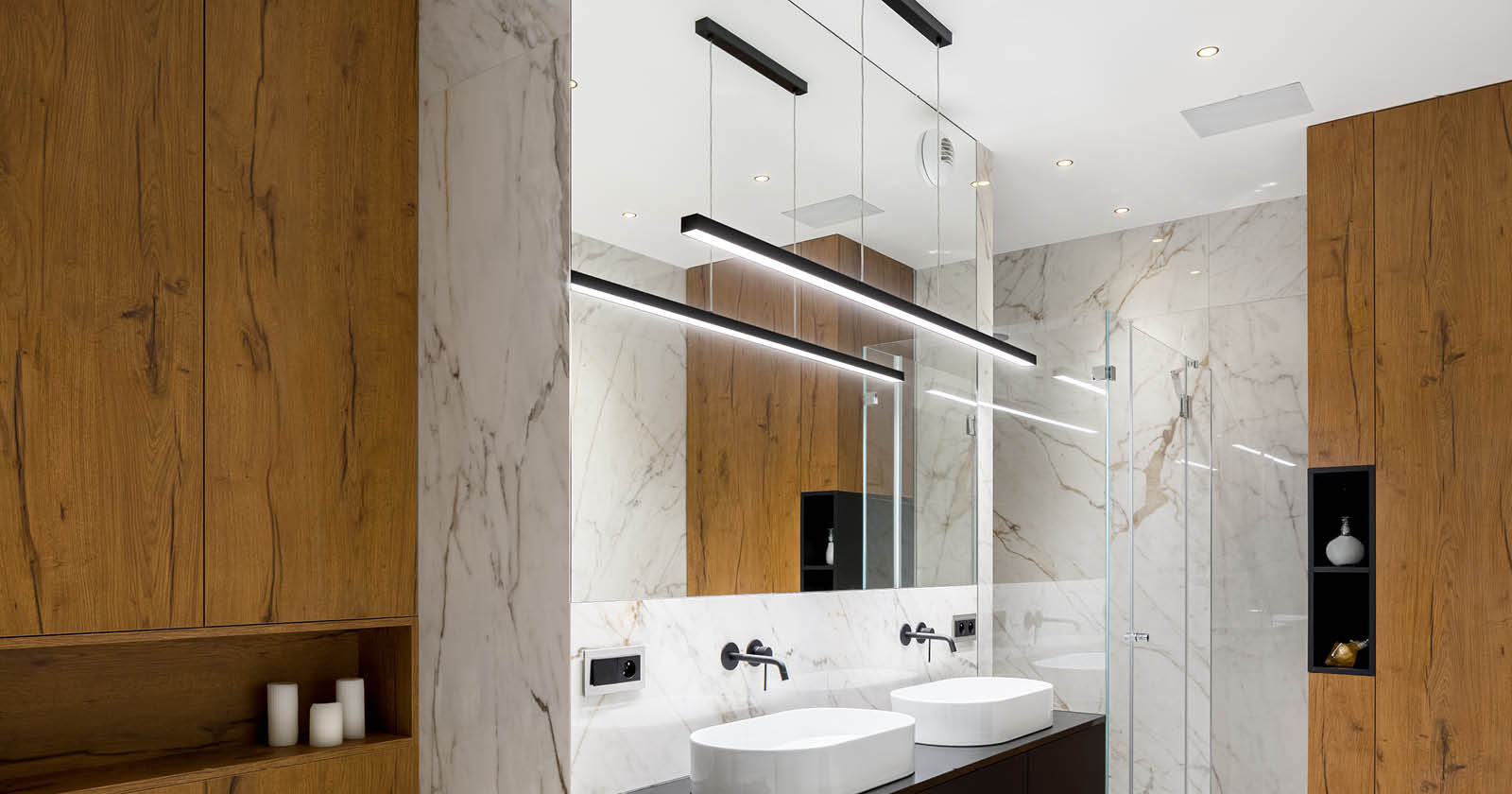 Oltre all'illuminazione generale, è importante posizionare delle luci funzionali in alcune zone specifiche del bagno, come: